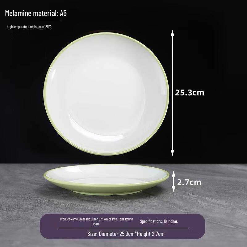 HANDUNYOU 10-Zoll Avocado Melamin Flache Teller, 5er-Set