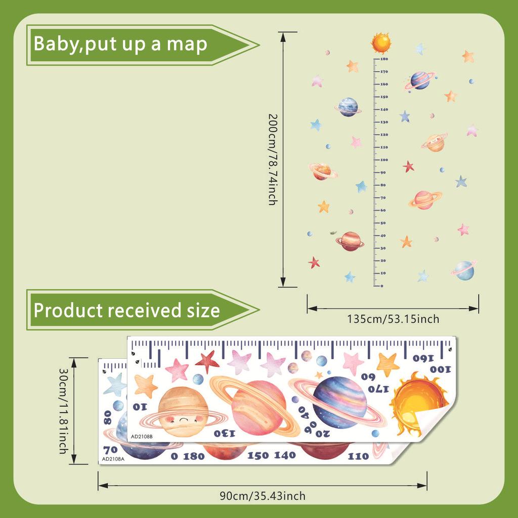 Cartoon Space Planet Height Chart Wall Sticker Removable Background Decor for Bedroom Living Room Kids Room