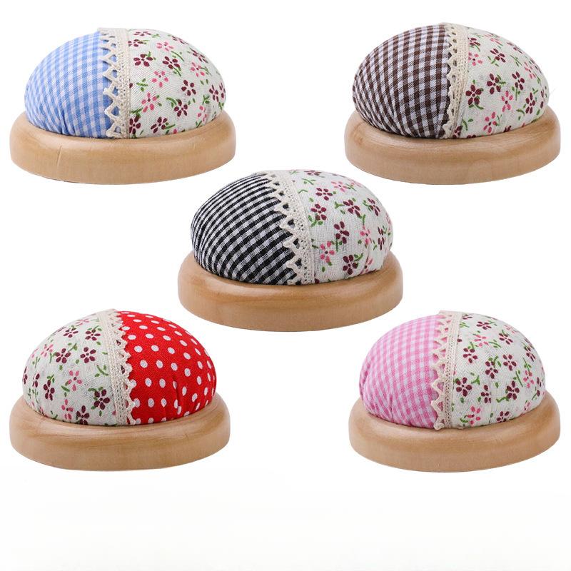 Rural Style Wooden Base Round Cute Cushions Pincushions Pin Cushion Pincushion Holder Needle Holders Pin Holders for DIY Craft