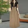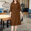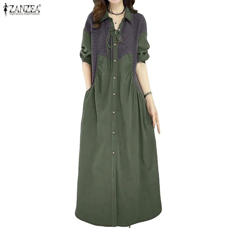 ZANZEA Women Casual Turn Down Collar Long Sleeve Loose Patchwork Dress