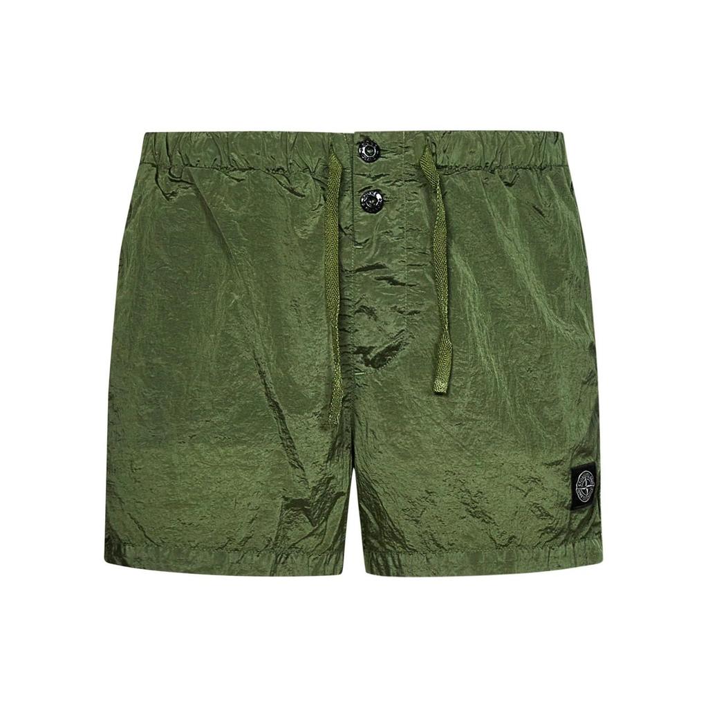 Stone Island Solid Color Mid Waist Fitted Straight Leg Swim Trunks Men swimwear Green 1015B0643-V0055