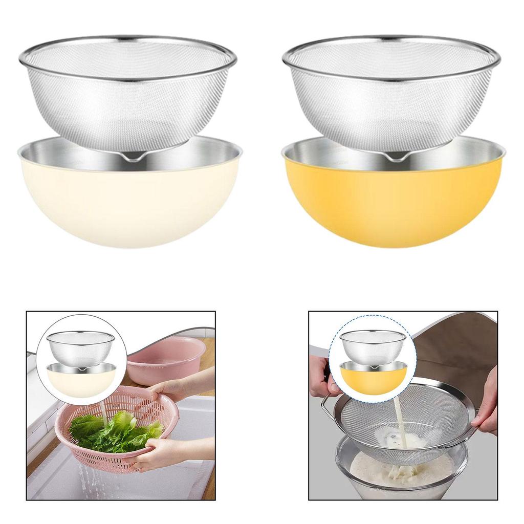 Reiswaschschale Siebschale Edelstahl-Sieb mit Rührschale, zum Salatmixen