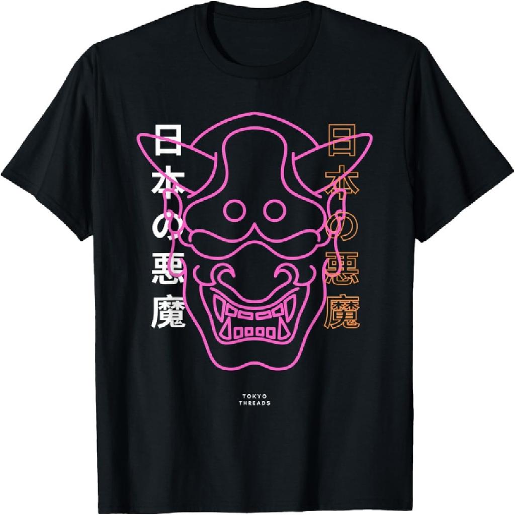 Japanische Dämonenkunst Gesicht Schädel Teufel Oni Harajuku Ästhetik T-Shirt