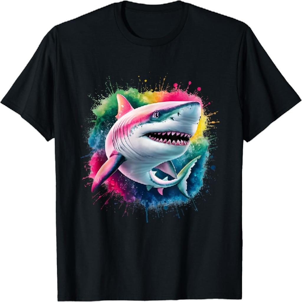 Männer Frauen Bunt Aquarell Weißer Hai T-Shirt