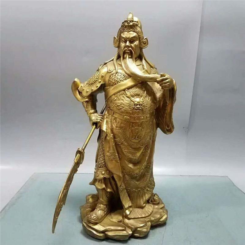 Messing Marsgott Gong Figur Schwert Er Ye Guan Yu Statue Heimdekoration Kupferhandwerk