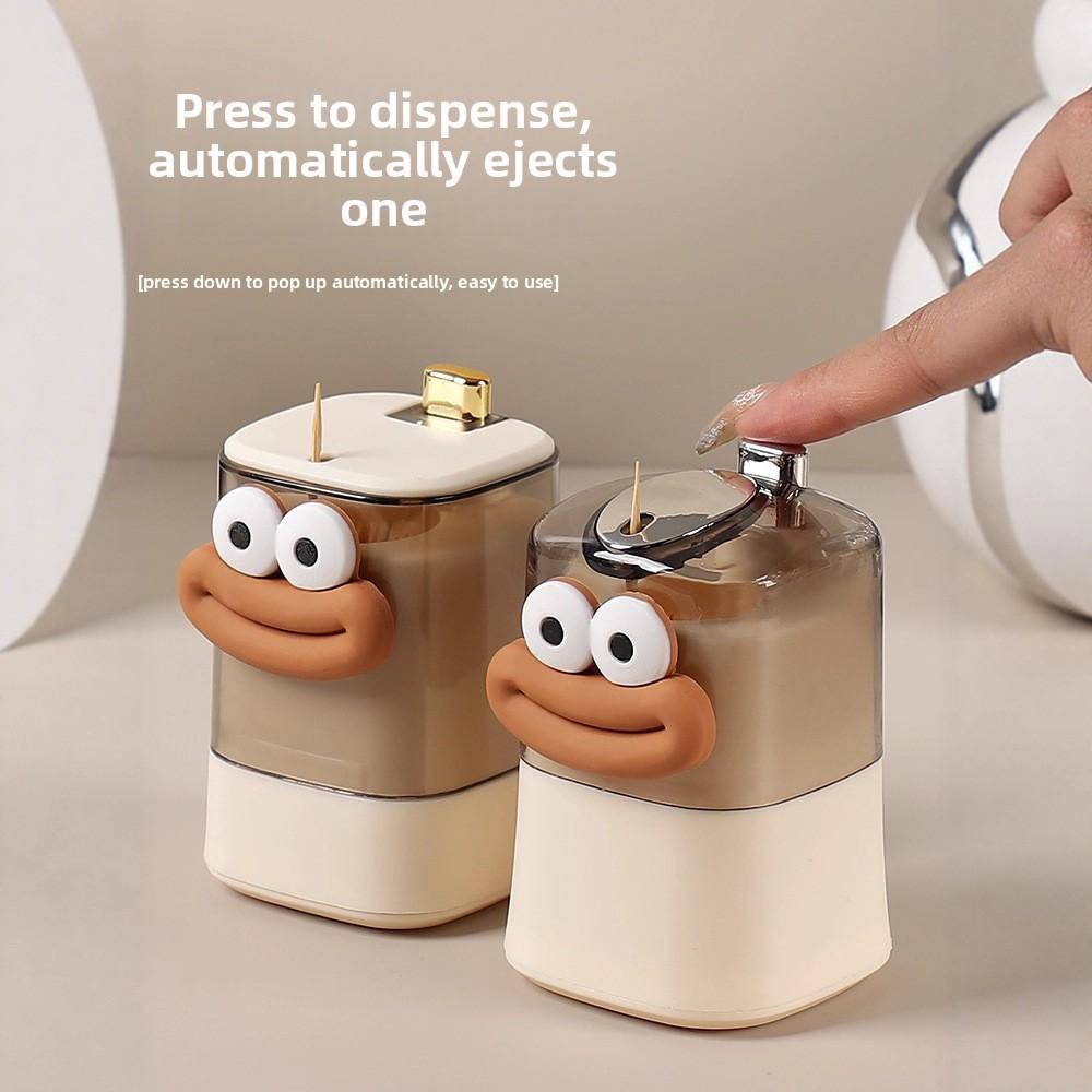"Zahnstocherspender poppt automatisch heraus, Haushaltsaufbewahrung, Kreatives und niedliches Kunststoff-Zahnstocherglas, Drucktyp-Zahnstocherbox"