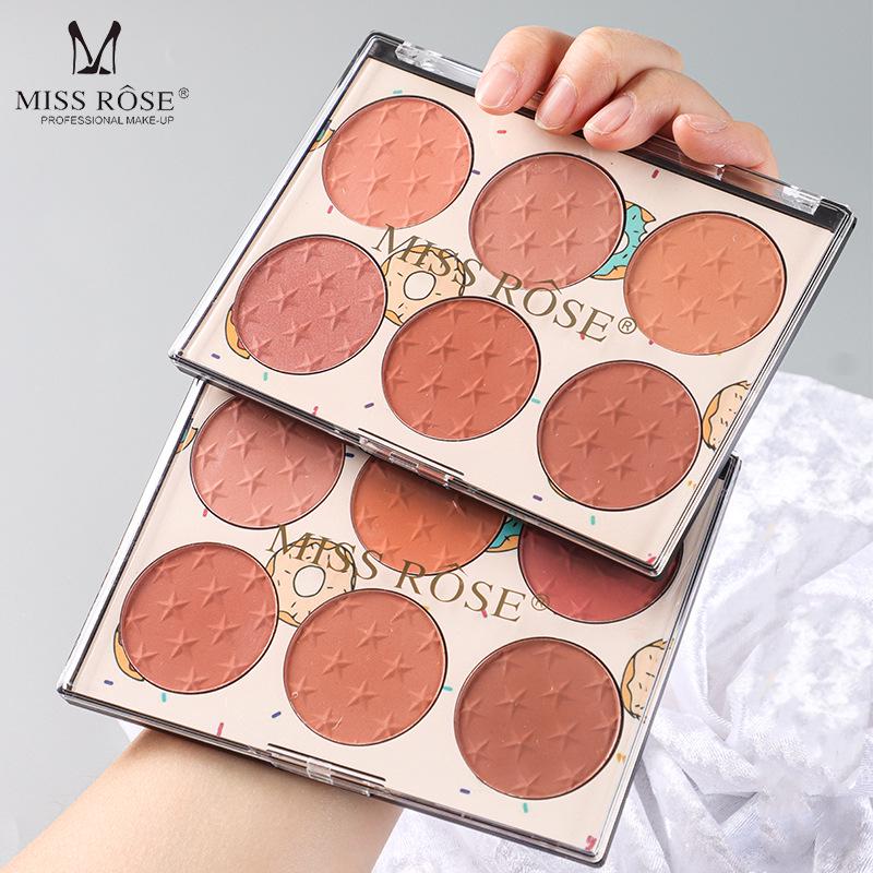 MISS ROSE Sechsfarbige Langanhaltende Rouge-Palette - Matt & Schimmernde Finishes, Sonnengeküsste Natürliche Töne, Hautfreundlich.