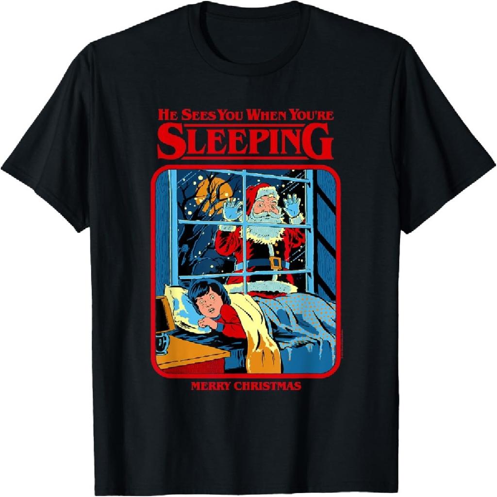 Santa Claus Sees You Retro Dark Humor T-Shirt