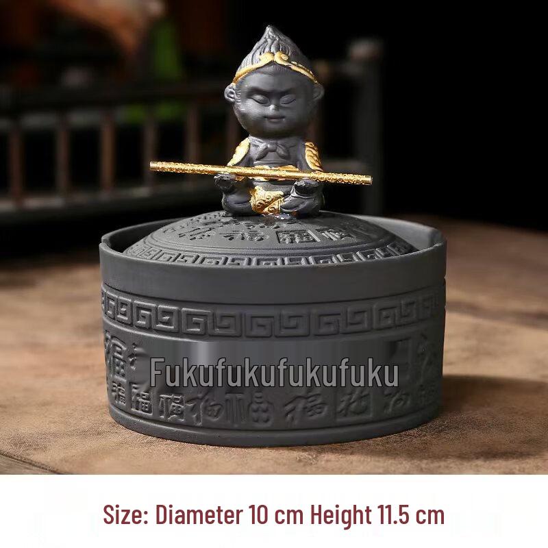 Zisha Ceramic Ashtray with Lid - Hundred Blessings