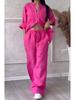 Discover effortless style and comfort with this casual shirt and pants set. Crafted from a premium blend of cotton and linen, the set offers breathability and softness, perfect for everyday wear. The shirt features a relaxed fit, complementing the sportive style that makes it easy to pair with various accessories. The drawstring wide-leg pants add a touch of laid-back sophistication, making this set a versatile addition to any wardrobe. Ideal for both casual outings and relaxed social gatherings, it combines the best of comfort and contemporary fashion.