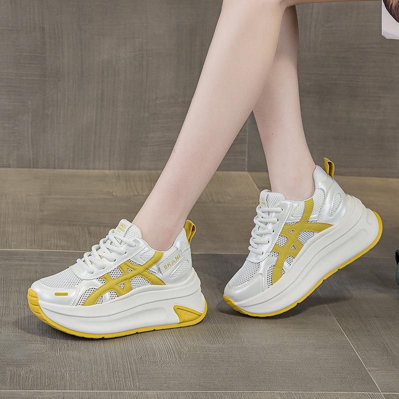 Neue Sommer-Mesh-Atmungsaktive Weiße Schuhe Damen Freizeit-Sport Bequem Flach Höhenverstellende Schuhe und Cut-Out-Schuhe