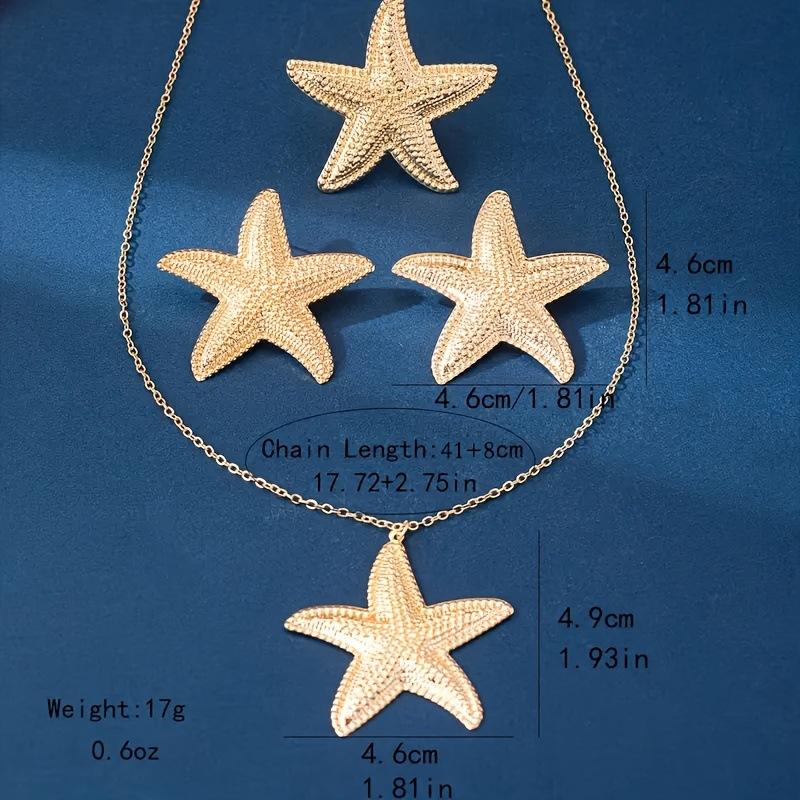 FineOne Set, übertrieben süßes Metall-Urlaubsstil-Seestern-Halskette, Ohrringe, Schmuckset für Damen.