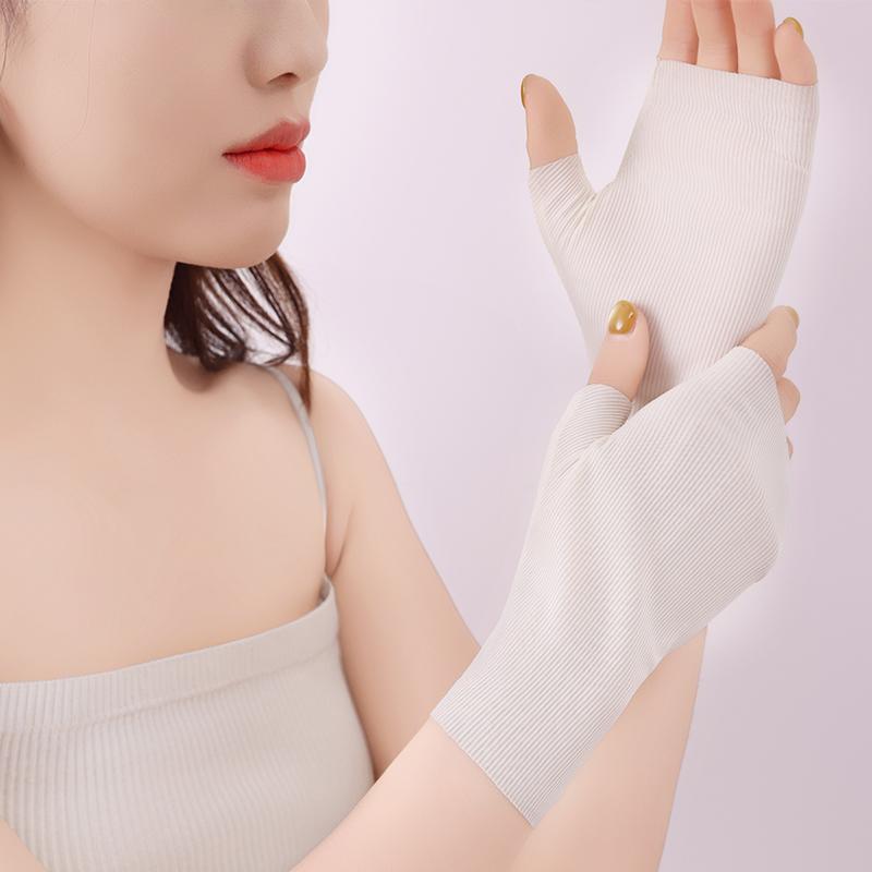 Neutral Ice Silk Leak Finger Summer Sun Protection Gloves Thin Silk Cycling Driving Letter Office Typing Short Half Finger Glove