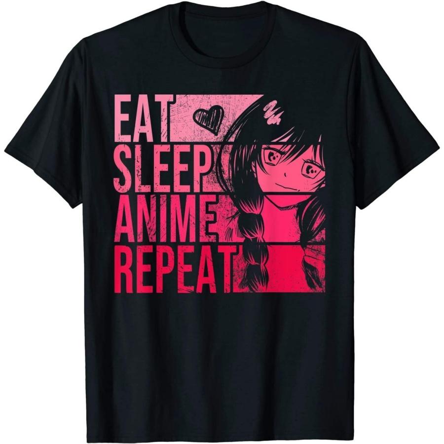 BINA STORE Eat Sleep Anime Repeat Shirt - Anime-Liebhaber Geschenkidee Mädchen T-Shirt T120321 Schwarz