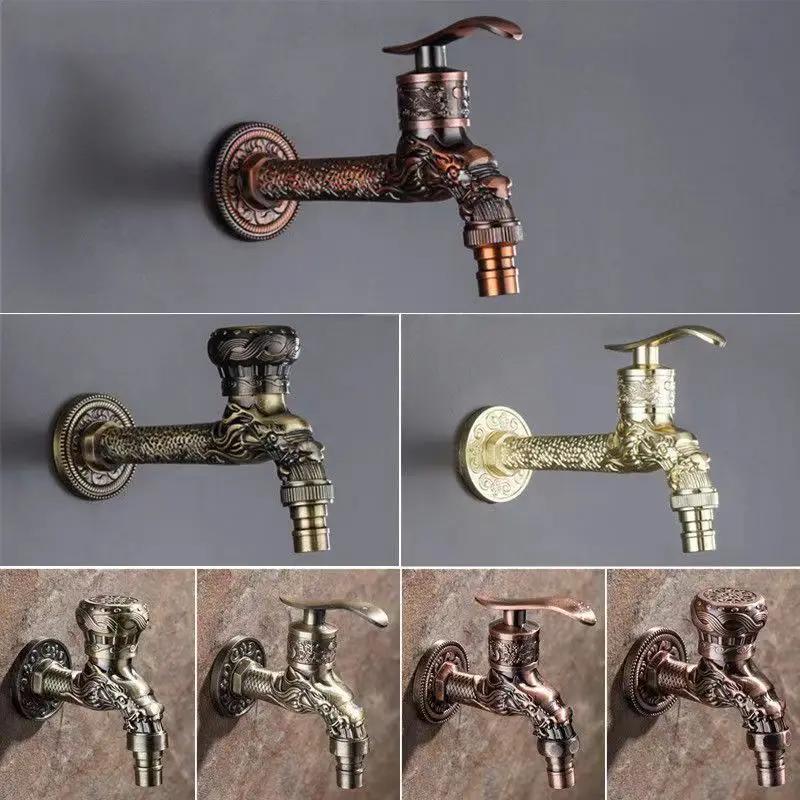 Antiker Europäischer Stil Wandmontierter Waschmaschinenhahn Einzelner Kaltwasserventilhahn Moppbeckenhahn Zubehör