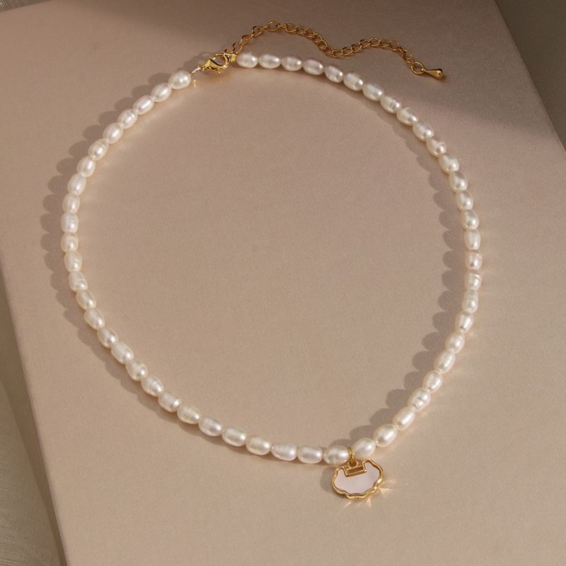 Vintage Ethnic Style Lock Pendant Natural Freshwater Pearl 14K Gold Filled Lady Short Chain Necklace New Year Gifts 2026