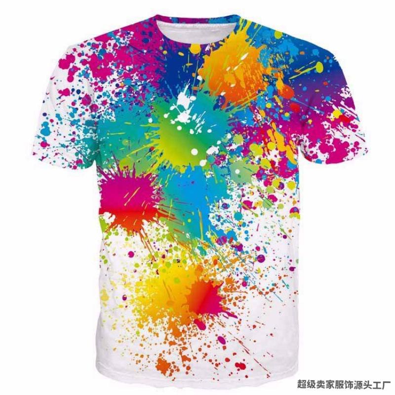 Herren 3D-Druck T-Shirt Buntes Muster Druck Kurzarm Rundhalsausschnitt Pullover Lässiges Oberteil