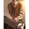 Preppy Style V-Ausschnitt Strickweste für Herren Frühling Herbst Neuer Stil Japanisch Retro Ärmelloser Pullover-Westen Pullover Weste Jacke