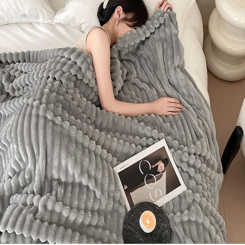 Modern Simple Solid Color Coral Rabbit Plush Blanket Winter Thick Wide Flannel Bedroom Sofa Soft Breathable Warm Cover Blanket