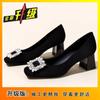 Silberne High-End-Flachboden-Einzelschuhe mit quadratischer Spitze und Strass für Damen, schwarze Pendler-Beanie-Schuhe für Herbst und Sommer