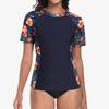 3.Stylish & Versatile Matching: This swim shirts features plant-based printed sleeves and a variety of fashionable colors, making it easy to match with any sports shorts or bikini bottoms