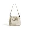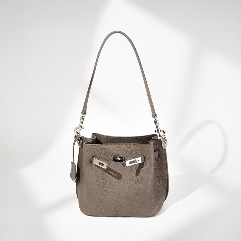 Klassische Damen-Tasche erste Schicht Rindsleder Einkaufskorb Eimer-Tasche einfarbig vielseitig Mode große Kapazität Leder Schulter-Achsel-Tasche