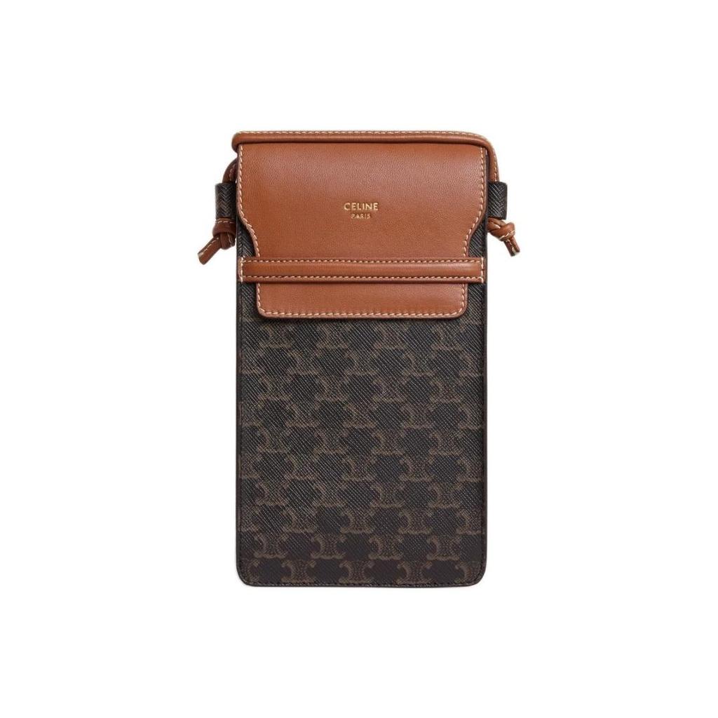 Celine Triomphe Classic Allover-Print Vintage-Print Klapptasche Leinwand mit Lammlederbesatz Schulter-Handytasche Damen Tan
