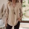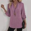 Fashion Shirt Women's Casual Top Loose Large Size V-Neck Solid Color Shirt