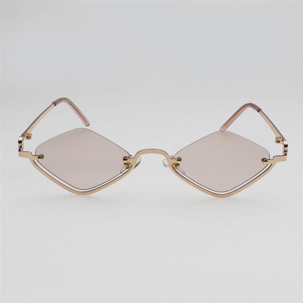Diamantförmige Damen-Sonnenbrille Kleine Metall-Halbrahmen-Sonnenbrille Schmale Hip-Hop-Vintage-Sonnenbrillen für Damen & Herren