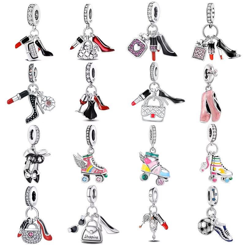 Copper Red High-Heeled Shoes Perfume Charms Fit Originalbracelet Charm Bead Necklace Diy Female Jewelry