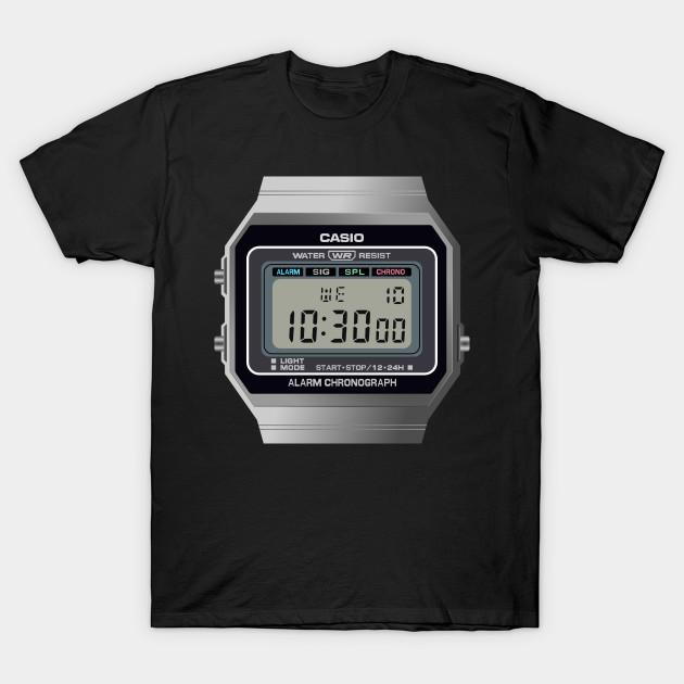 Herren Schwarzes T-Shirt mit Aufdruck Silberne Casio A700 No-Cut Transferpapier Druck Baumwoll-T-Shirt