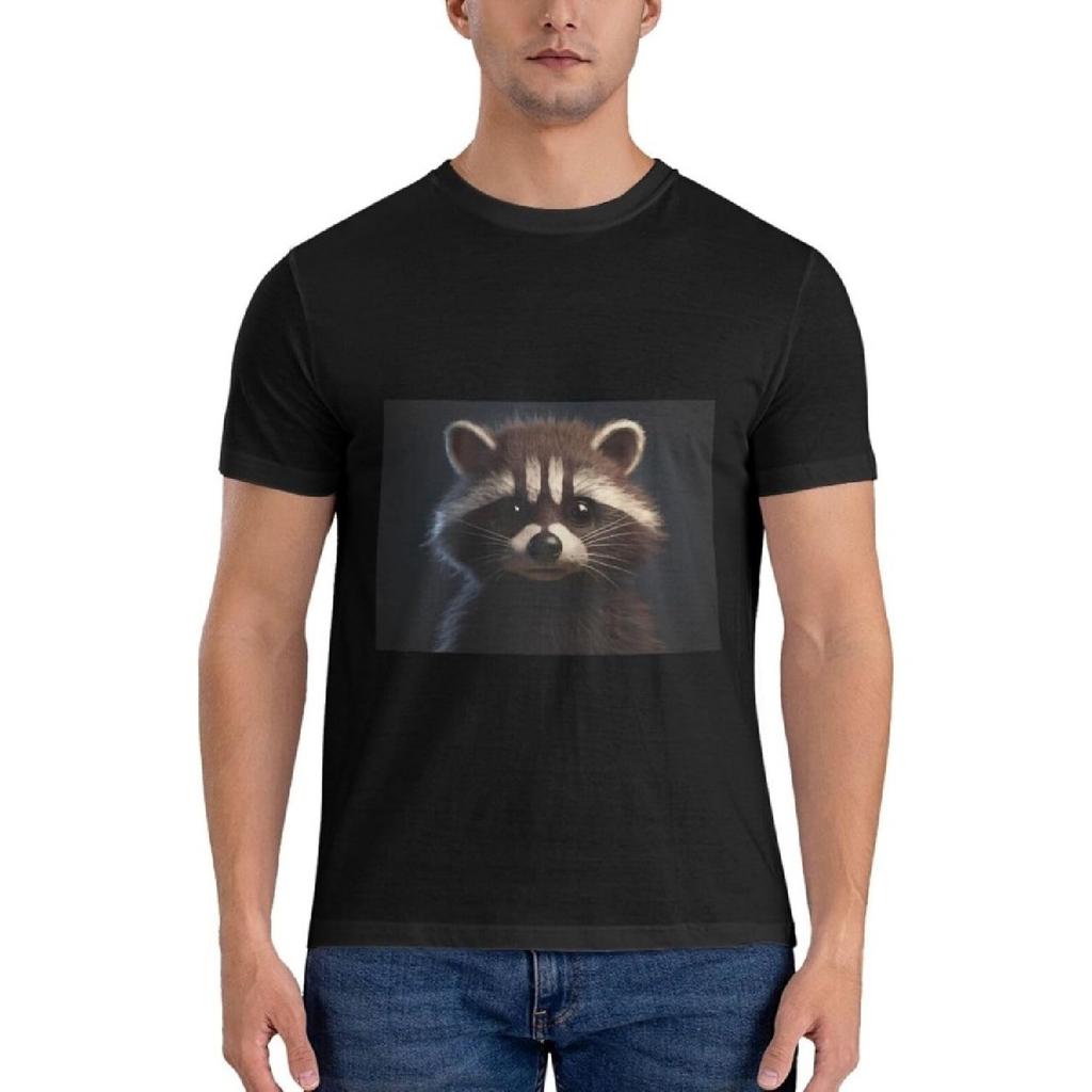 UDFKGLP Black Little Raccoon Face Pattern Men's Short Sleeve t-Shirt Cotton Trendy Round Neck