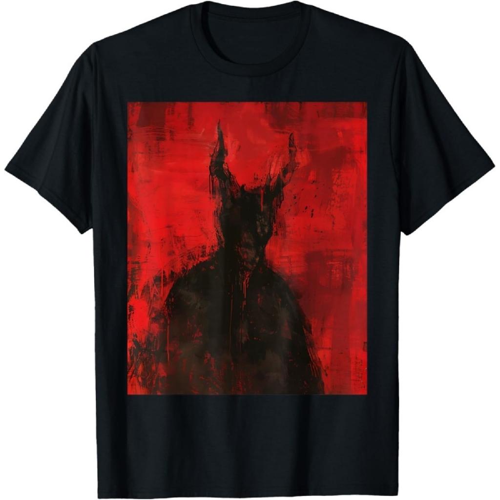 XHWJH Roter Dämon Satan Baphomet Horror Kunst Goth Dunkle Hölle Okkultes T-Shirt