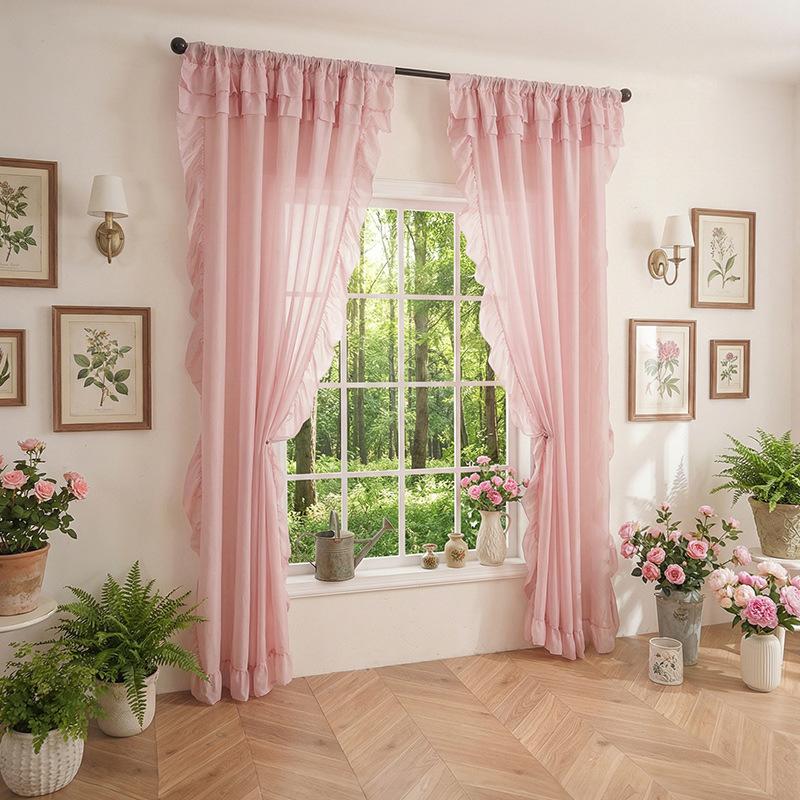 Solid Color Curtain Curtain Finished Product, Simple Wind, Solid Color Ruffle Leaf Edge, Light-Transmitting Thin Window Screen