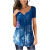 Damen Kurzarm-Tunika, lockere Oberteile, lässig, Übergröße, Oberteile, plissierte Tunika, Knopf, lässig, Sommer, Blumenmuster, Krawattenoberteile für Damen