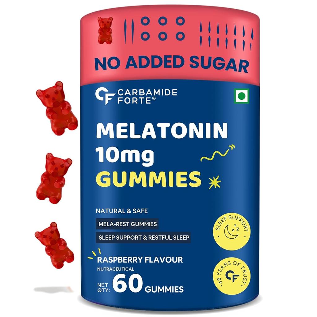 Carbamide Forte 10 mg Melatonin Gummibärchen für Tiefschlaf | Schlafmittel für Männer und Frauen | 60 Vegane zuckerfreie Gummibärchen