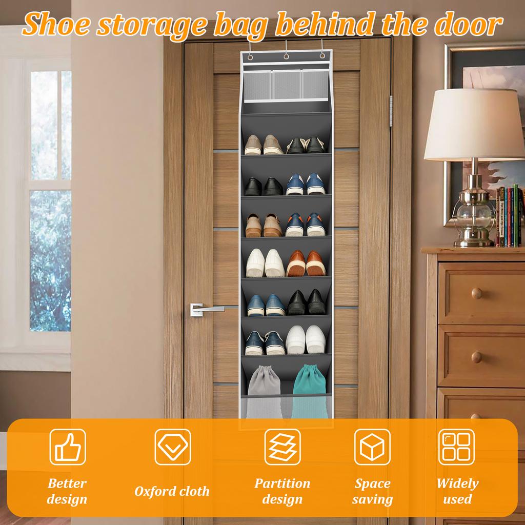 Tür-Schuh-Organizer-Tasche 8-lagiges Schuh-Hänge-Aufbewahrungsregal mit Ober- und Seitentaschen für Stiefel, Sneaker, Sandalen