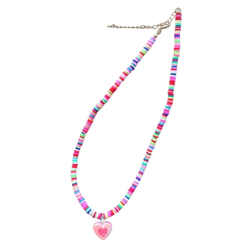 Modische Regenbogen Herz Anhänger Halskette für Damen Süßigkeiten Farbe Dopamin Perlen Halskette Auffällige Perlenkette Schmuck