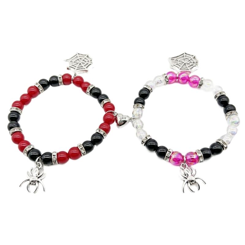 1 Paar Spinnen-Paararmbänder Magnetisches Herz-Design Handgelenkkette Trend Freundschaftsarmband für den Alltag Halloween-Party