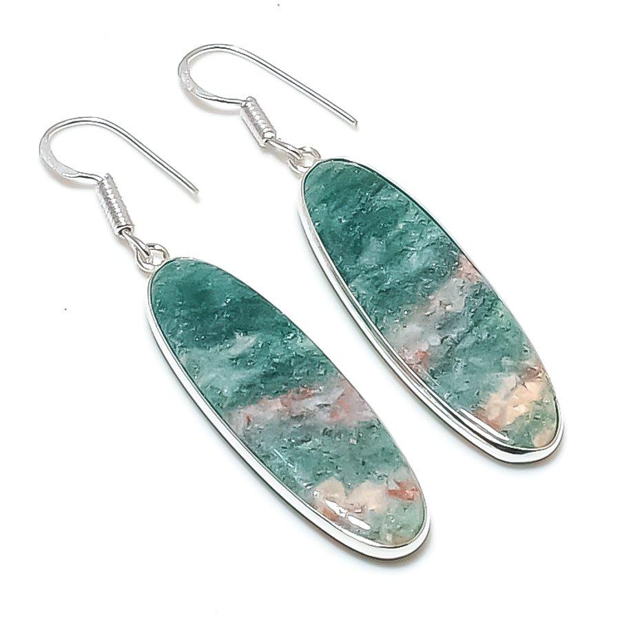 Natürlicher Grüner Aventurin Edelstein 925 Sterling Silber Schmuck Ohrring 2,29" AEE-10739