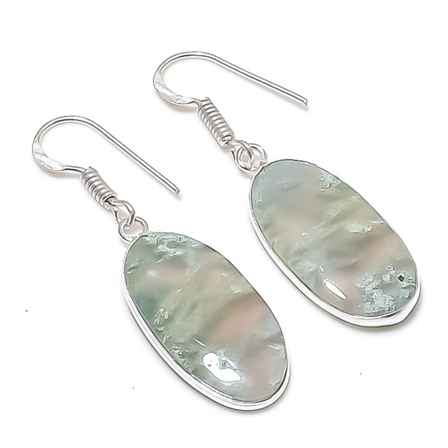 Natürlicher Indischer Moosachat 925 Sterling Silber Schmuck Ohrring 1,73" AEE-10972