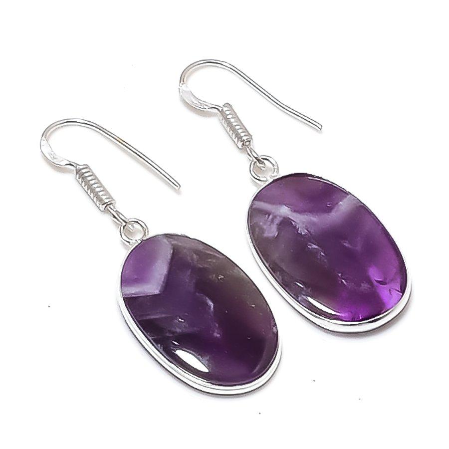 Natürlicher Chevron-Amethyst Edelstein 925 Sterling Silber Schmuck Ohrring 1,65" AEE-10816