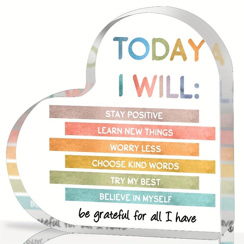 2D Flat Heart-Shaped Acrylic Colorful Affirmations Desk Decor Plaque, Suitable for Wall Decoration, Porch, Room, Villa, Accents Home, Hallway, or Work