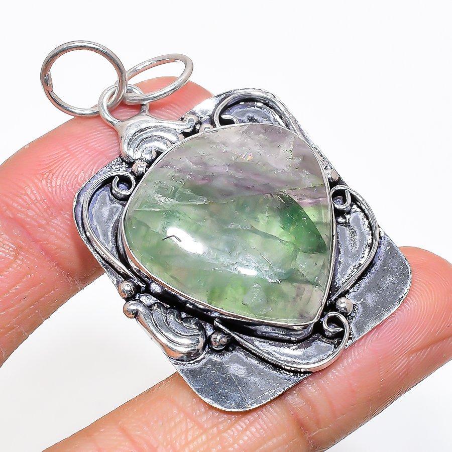 Natürlicher Fluorit Edelstein 925 Sterling Silber Schmuck Anhänger 2,13" AP-14002