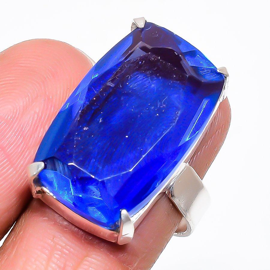 Natürlicher Schweizer Blautopas Edelstein 925 Sterling Silber Schmuck Ringgröße 7 AR-16604