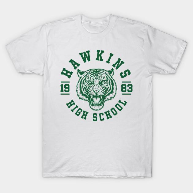 Herren Schwarzes T-Shirt mit Aufdruck Vintage Hawkins High School Tigers 1983 Kein-Schnitt-Transferpapierdruck Baumwoll-T-Shirt