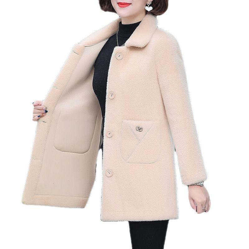 Moms Winter Coat Imitation Sherpa Mid-length Updated Style Foreign Style Fur One-piece Woolen Coat for Middle-aged and Elderly Women