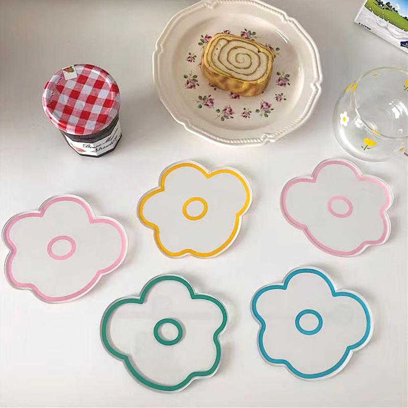 Klarer Acryl-Untersetzer, rutschfeste Tassenunterlage, unregelmäßige Blumenform, wärmeisolierte Unterlage, Tischset, Café-Dekor, Küchenbechermatten
