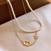Koreanische Version von mit Diamanten besetztem Buchstaben-CD-Perlen-Halskette 2025 neues doppelreihiges gestapeltes Design Armband Schmuck