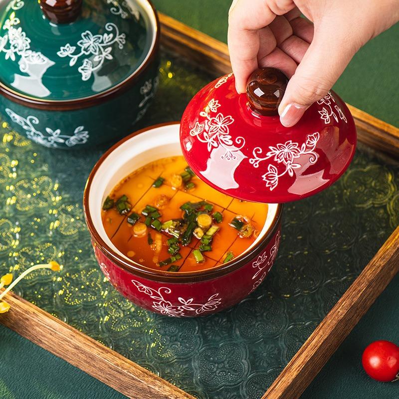 Weinblüten-Eintopfbecher Keramik-Schmortopf Suppen-Eintopfbecher Haushalts-Hochwertiger Dämpfbecher Wasserdichter Eintopf mit Deckel Gedämpfter Eier-Suppenbecher Schmortopf